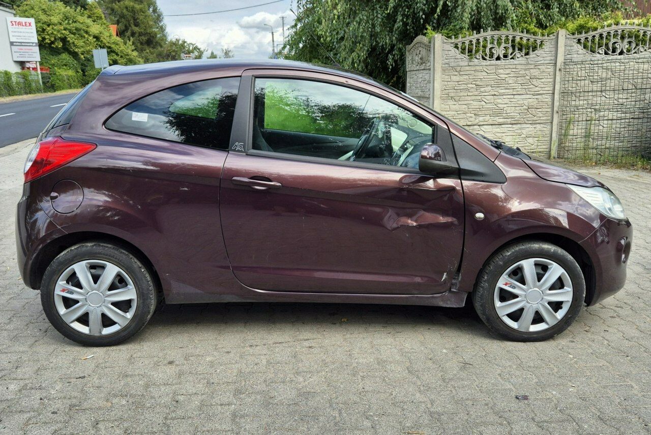 Sprowadzony z Francji Ford Ka w ślicznym śliwkowym kolorze, z prostym benzynowym silniczkiem 1.2 70KM z klimatyzacją ;)W autko uderzył skuter na wysokości prawych drzwi.