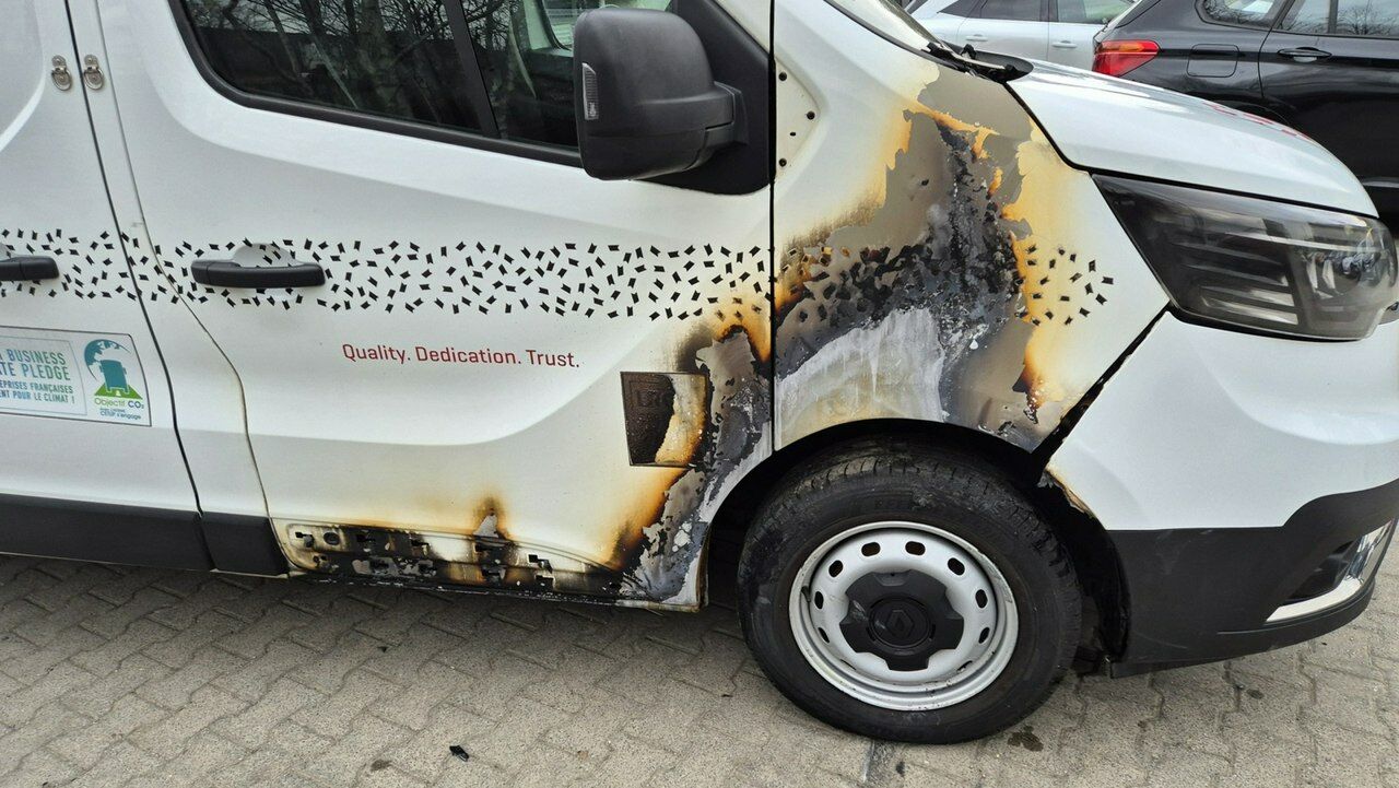 Uszkodzony prawy przód- pod auto został wrzucony koktajl Mołotowa