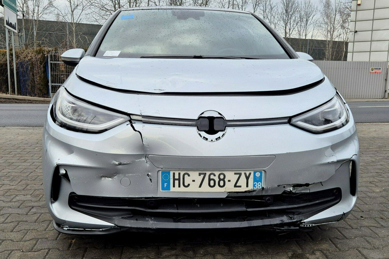 Sprowadzony z Francji VW ID.3 PRO po liftingu w wersji 204KM z baterią 63kWh zapewniający do 430km zasięgu!Auto uszkodzone przodem, głównie lewe zawieszenie. Bateria nietknięta.